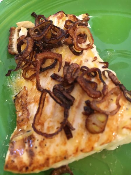 Halibut with Lemon-Butter and Crispy Shallots (adapted from Giada De Laurentiis)