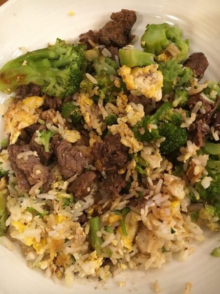 Add the cooked rice, spreading it out; heat through, about 3 minutes. Return the egg and beef to the pan, stirring to break up the egg. Divide among bowls.