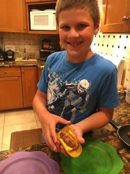 Of course, you can make your burrito any way that you’d like, but here’s my son’s recipe for deliciousness!